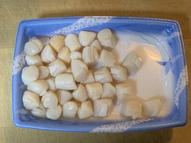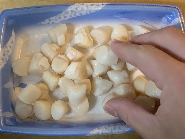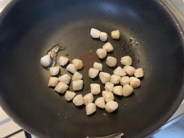そして、フライパンに小量の油を入れていたや貝の貝柱を投入。